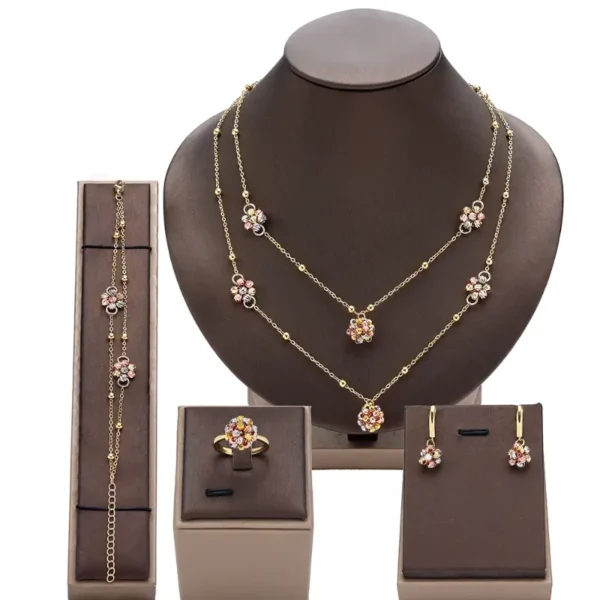 Fashionable Handmade Woven Beads Wave Line Open Cuff Bracelet Ring Necklace Earrings 4 pcs Set